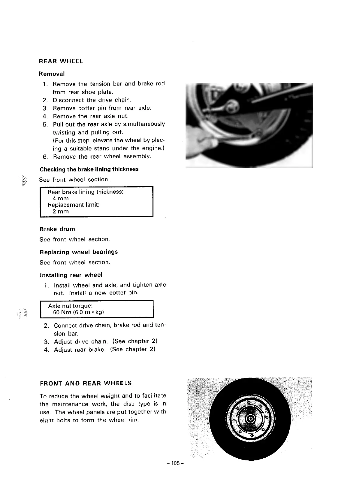Yamaha LB50IIAC - Yamaha Rear Wheel Removal; Yamaha Rear Brake Lining Thickness Check; Yamaha Rear Brake Drum Inspection; Yamaha Rear Wheel Bearing Replacement