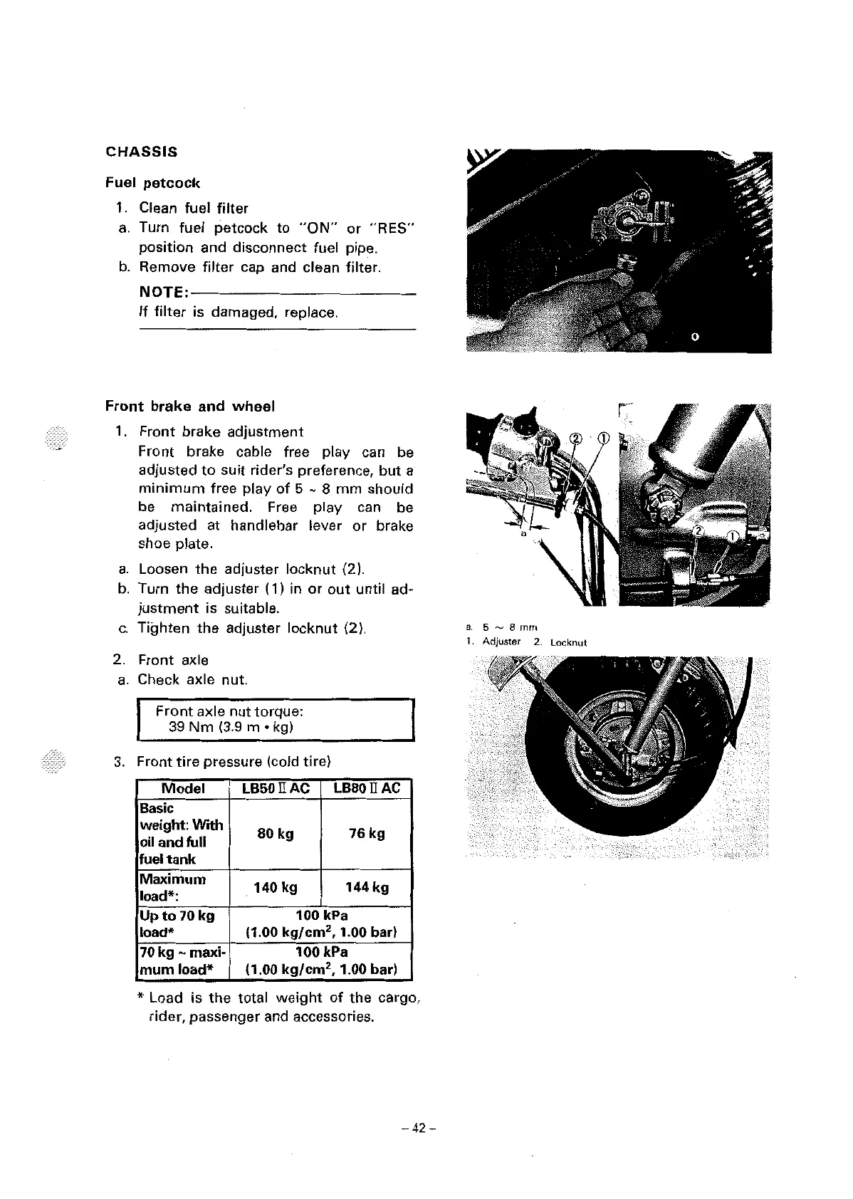 Yamaha LB50IIAC - Chassis Periodic Inspections and Adjustments; Yamaha Fuel Petcock Cleaning; Yamaha Front Brake and Wheel Check