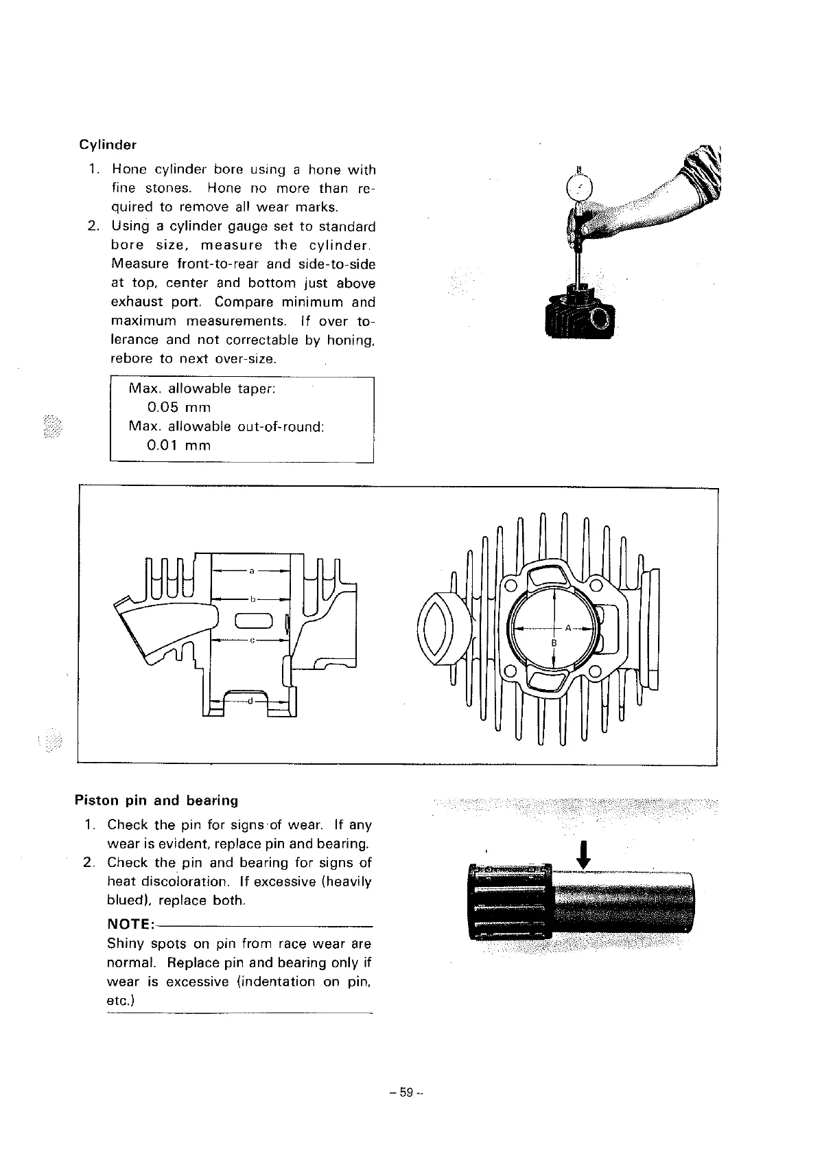 Yamaha LB50IIAC - Yamaha Cylinder Bore Inspection; Yamaha Piston Pin and Bearing Inspection