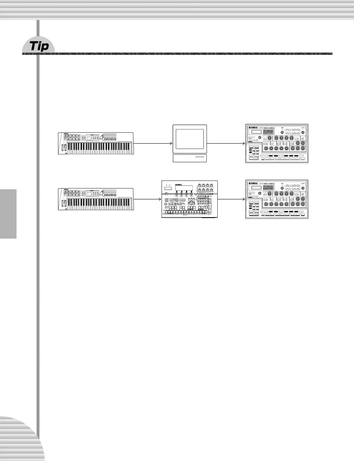 In the top example, the computer has a MIDI interface and is running sequencing software, such as