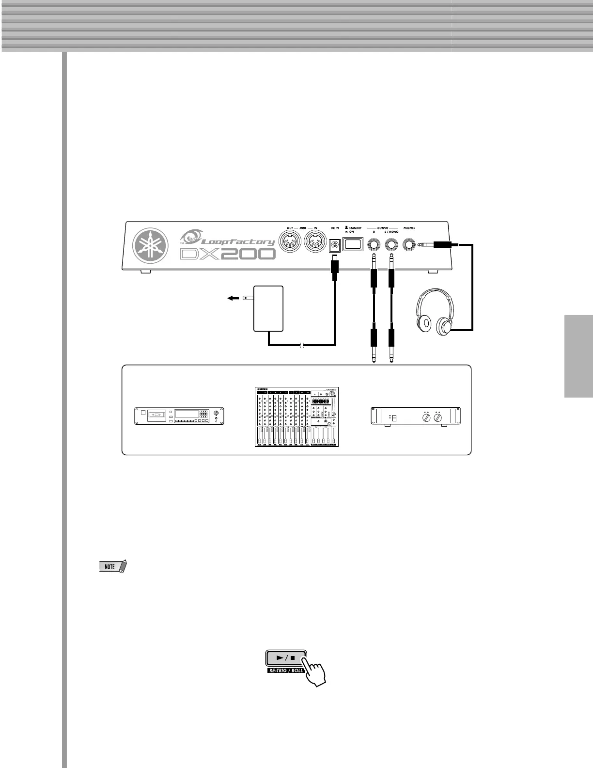2 Connect the OUTPUT jacks (L/MONO and R) to the inputs of your