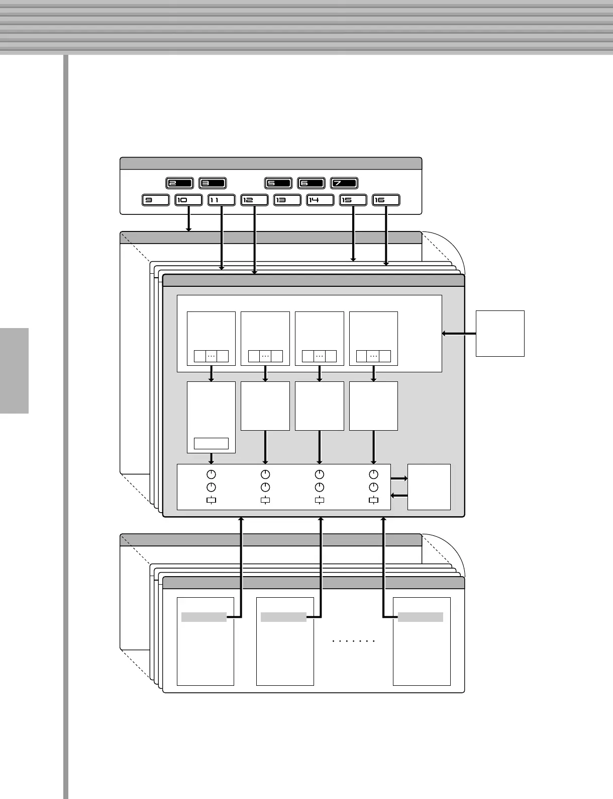 This diagram shows the structure and hierarchy of the Songs, Patterns and Voices of the DX200. As you