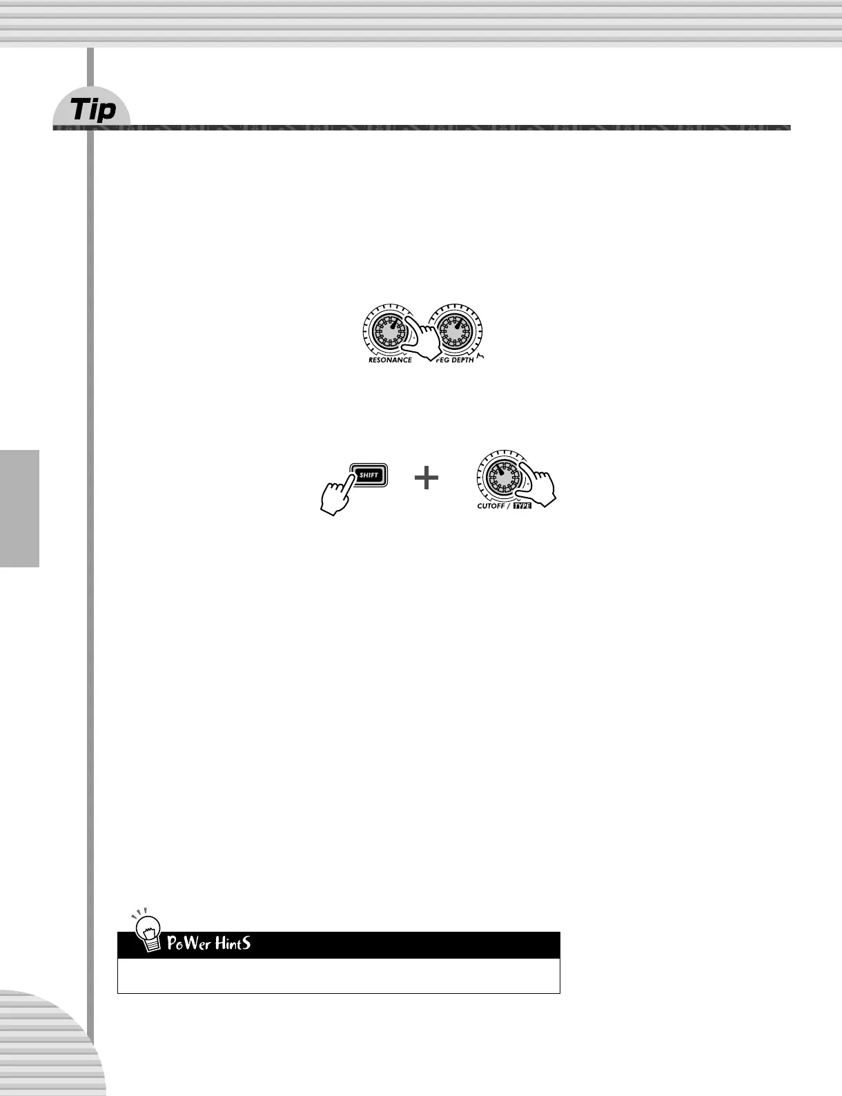 2 Simultaneously hold down [SHIFT] and turn the [CUTOFF] knob.