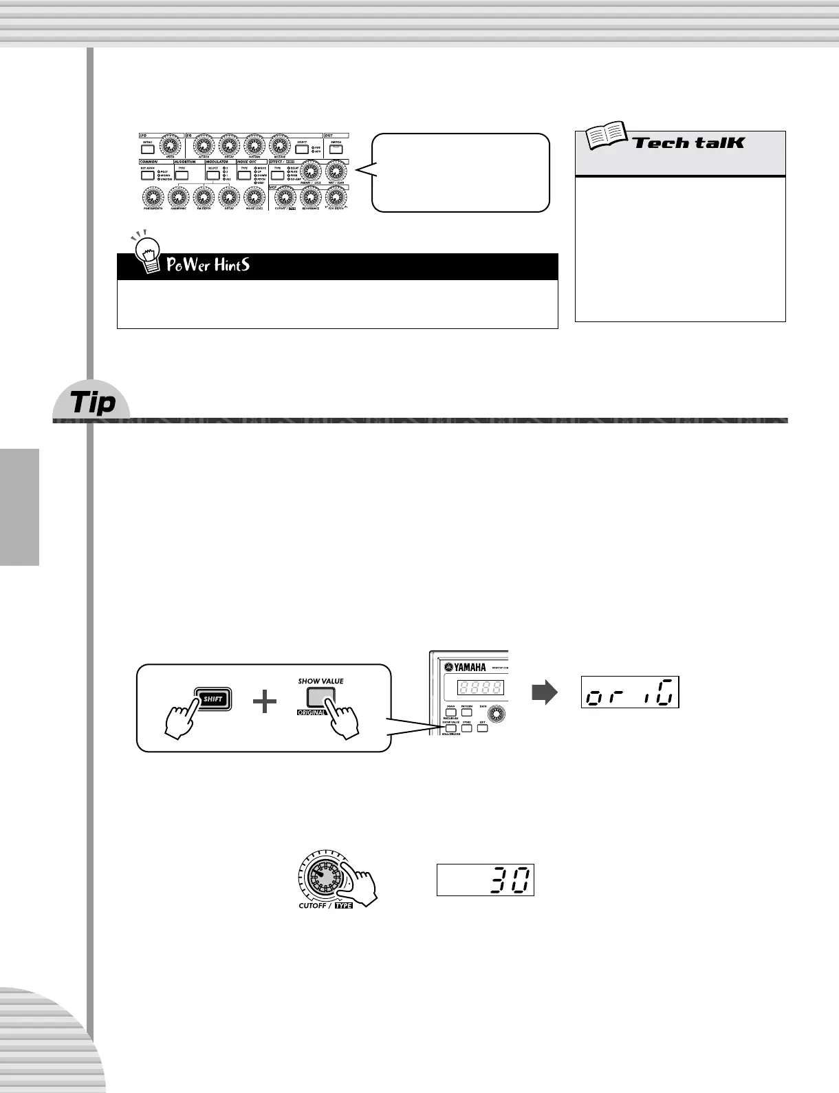 For example, to see the original Cutoff value that’s been set for the Voice, turn the [CUTOFF] knob.