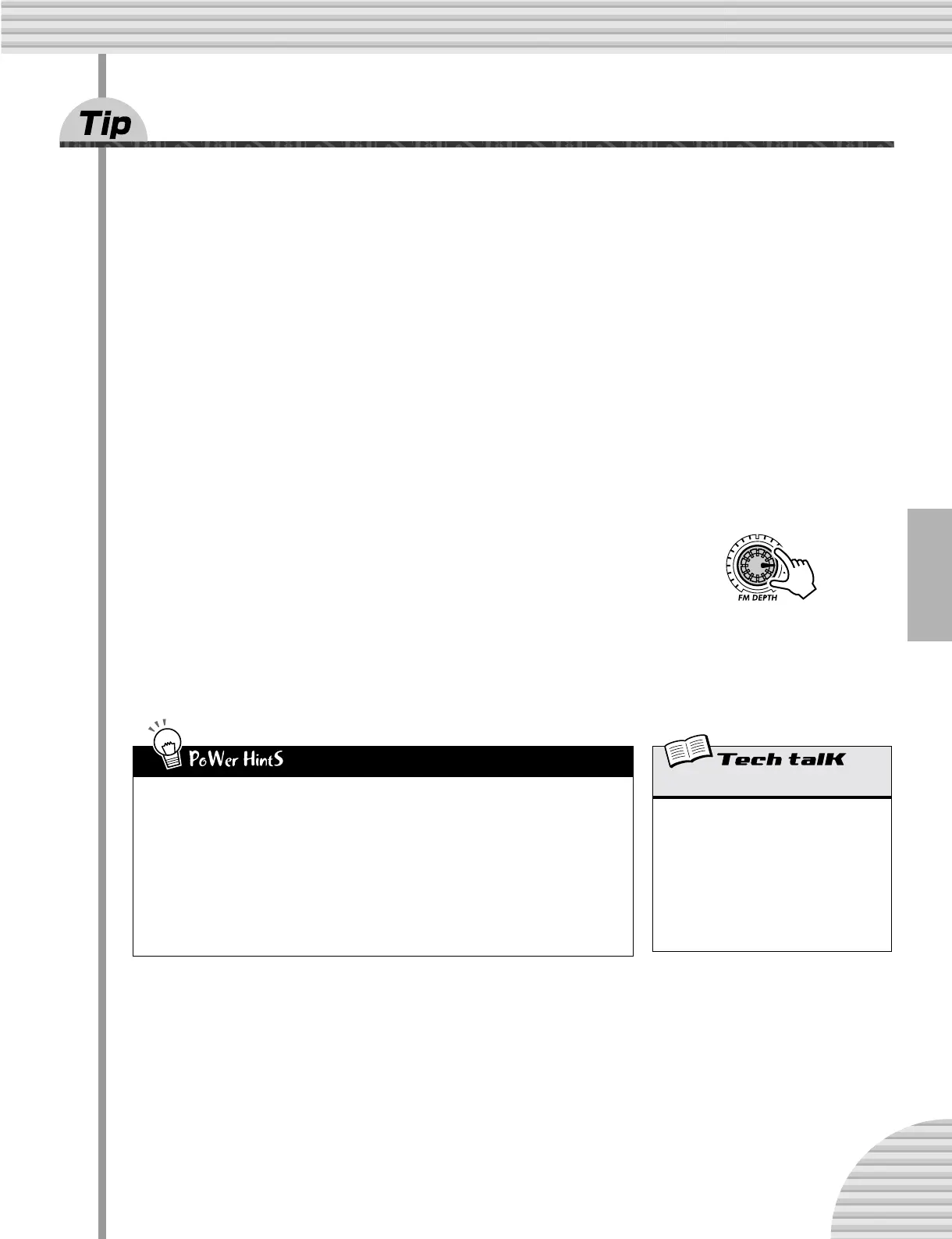 Harmonic (Tip 42 above) and FM Depth are two sides of the same sound-shaping coin. For