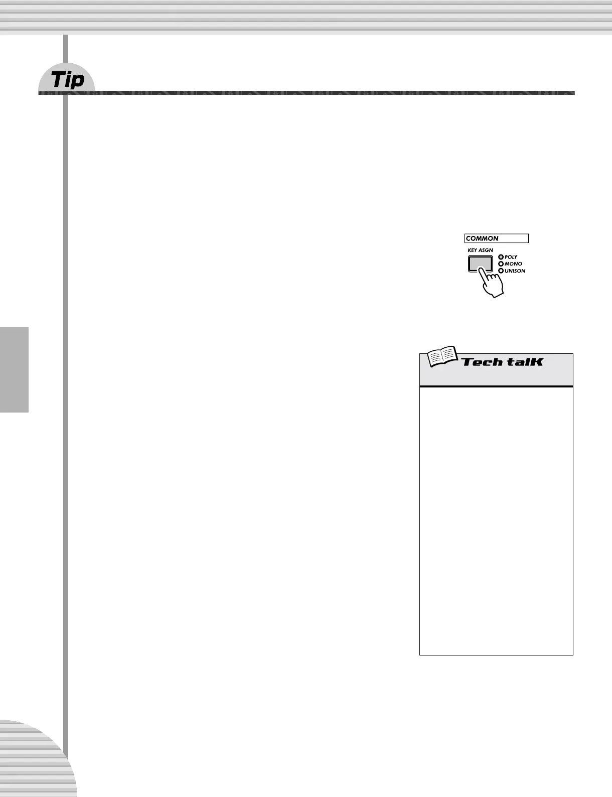 Key Assign lets you configure the DX200 in either Poly or Mono operation, for full chords or single-note