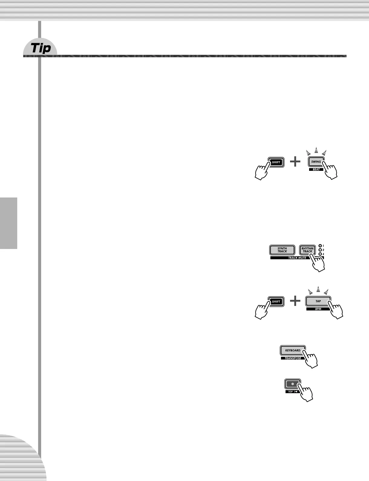 three Rhythm tracks. Press [SYNTH TRACK] for Synth,