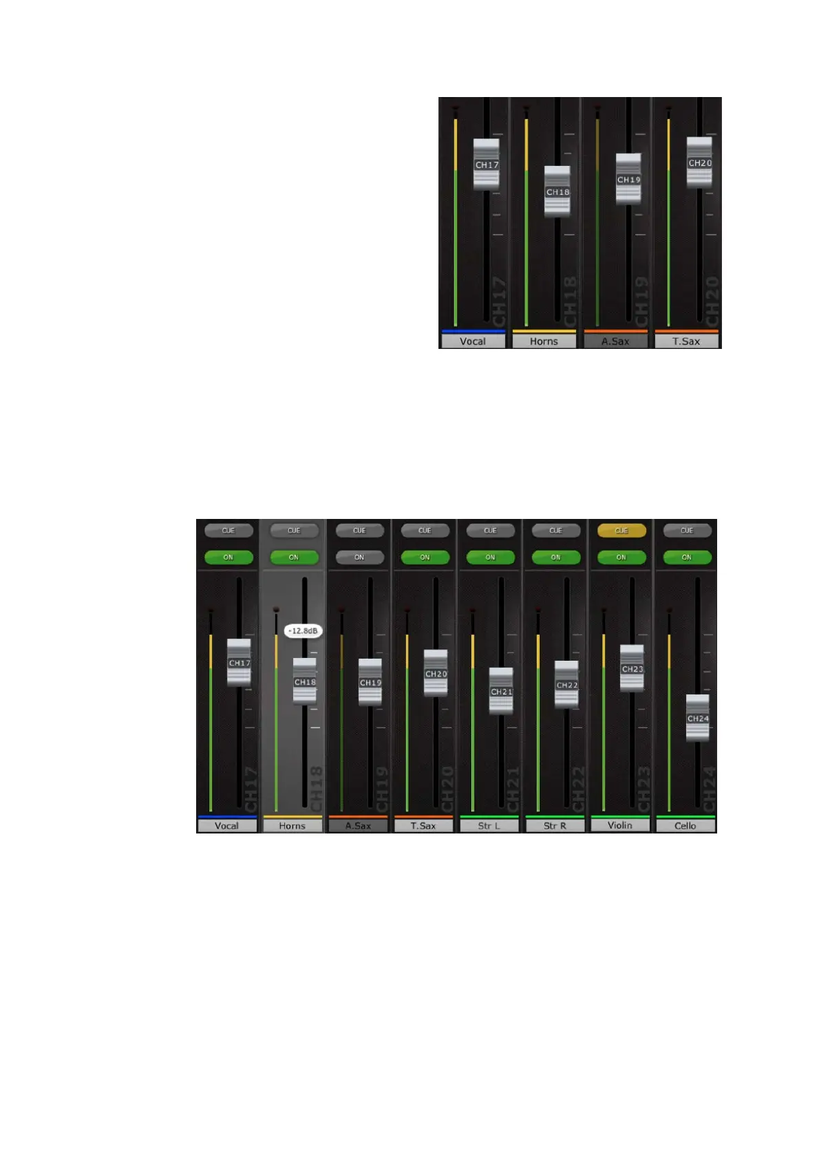 level meter will go dim, and its fader position shown in the