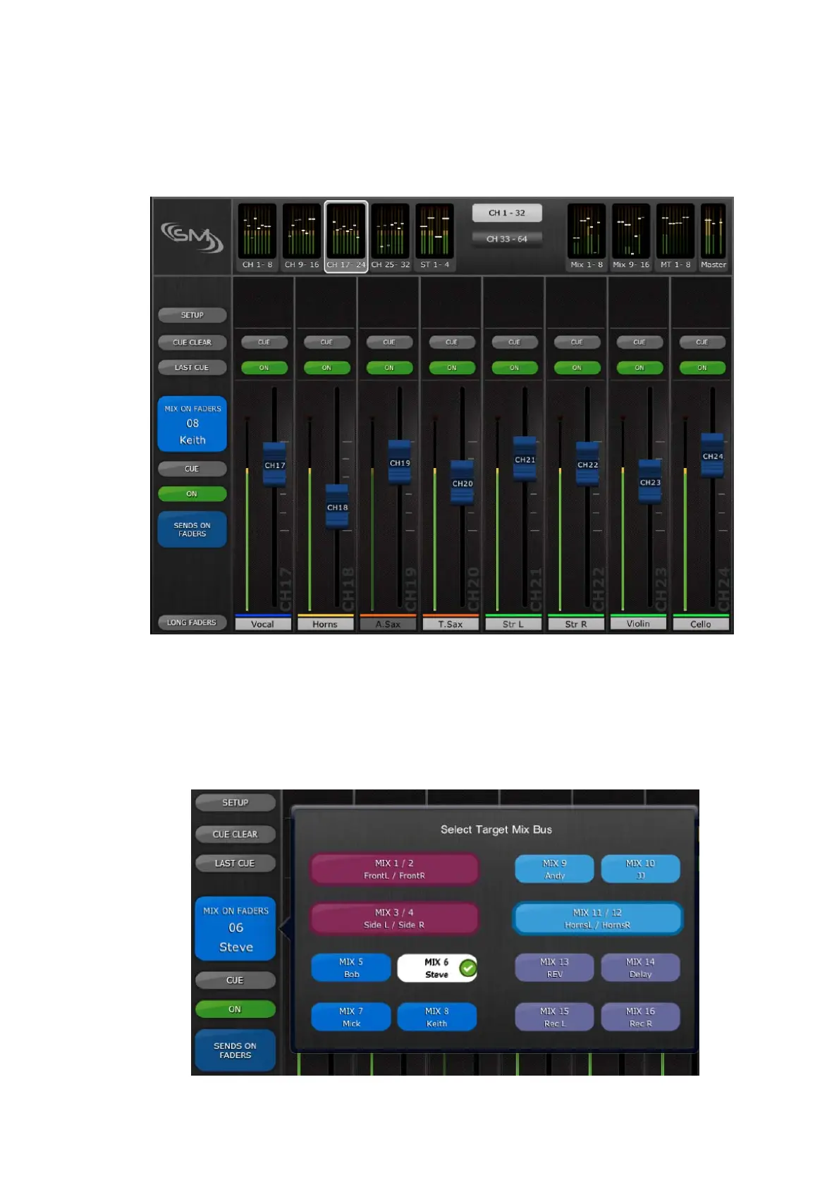 to access sends to Mix busses. In “SENDS ON FADERS” mode, each fader