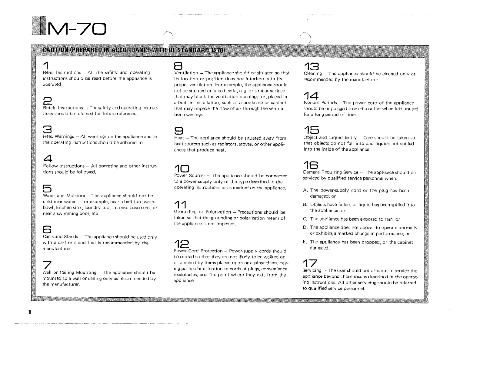 Yamaha M-70 - UL Safety Precautions; General Safety Guidelines