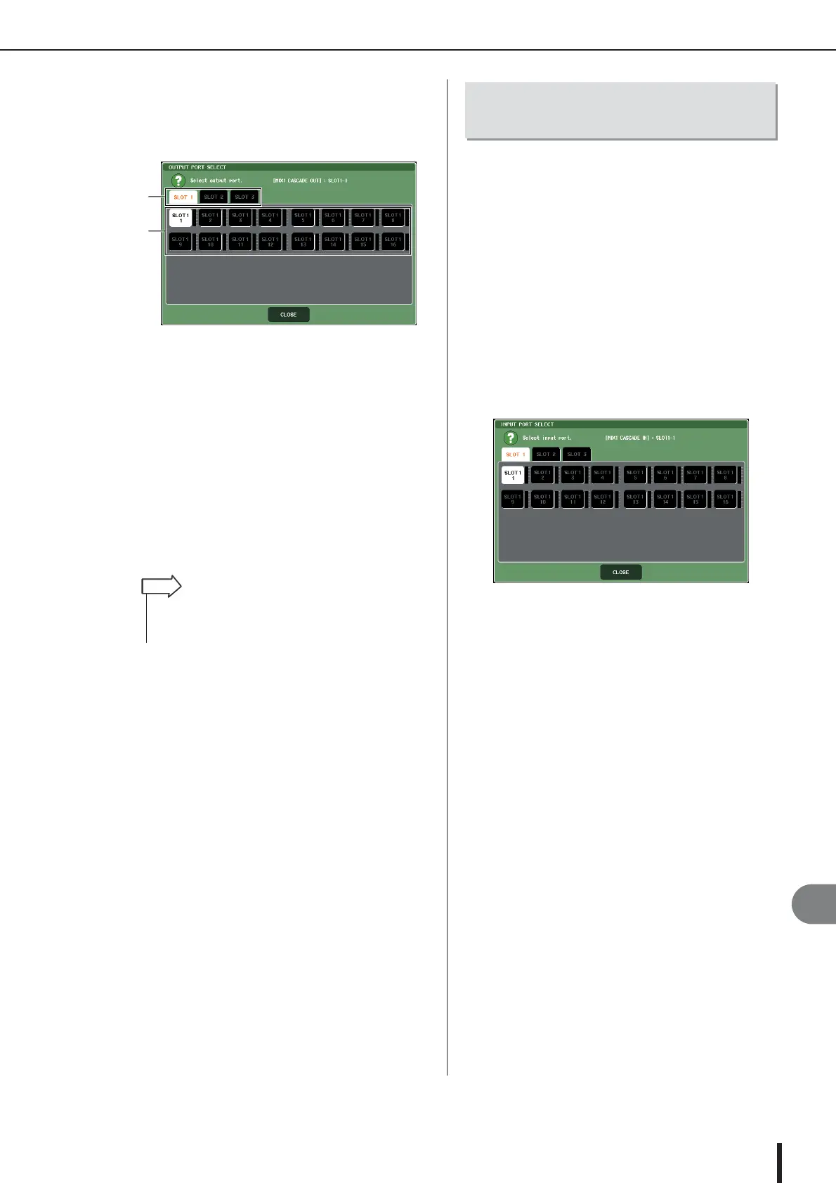 Use the slot select tabs and port select but-
