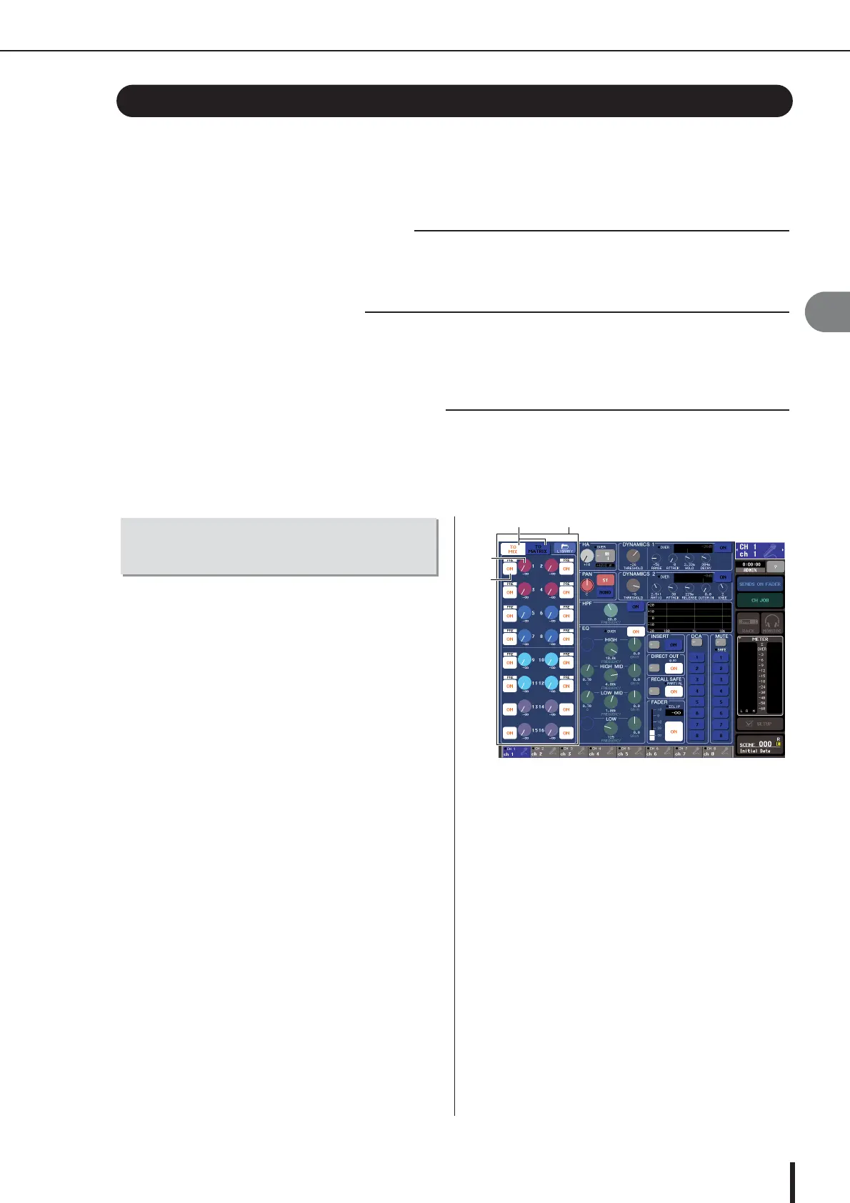 channel to MIX bus. To adjust the send levels, use the