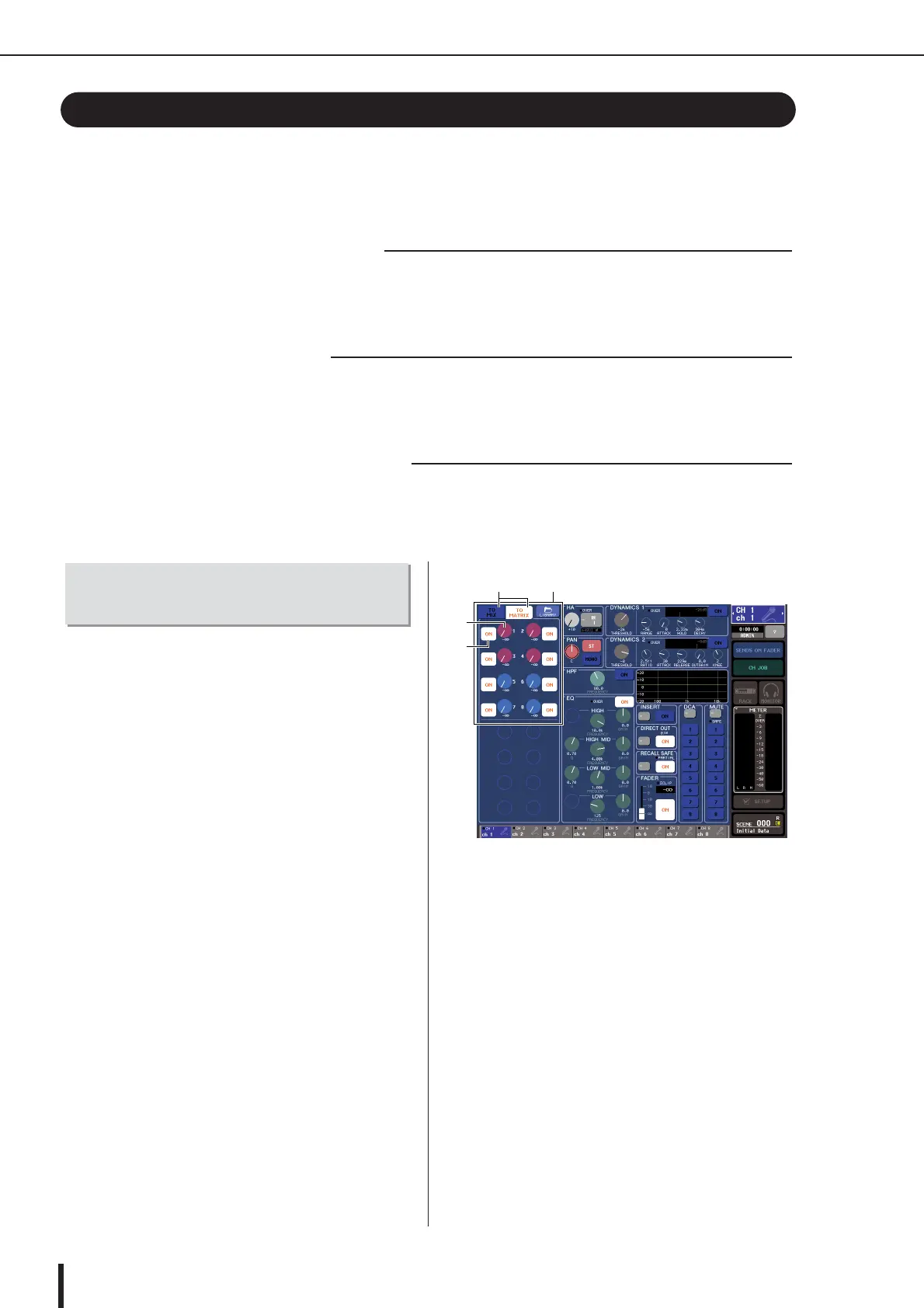 This section explains how to send the signal from an input channel to MATRIX buses 1–8. The