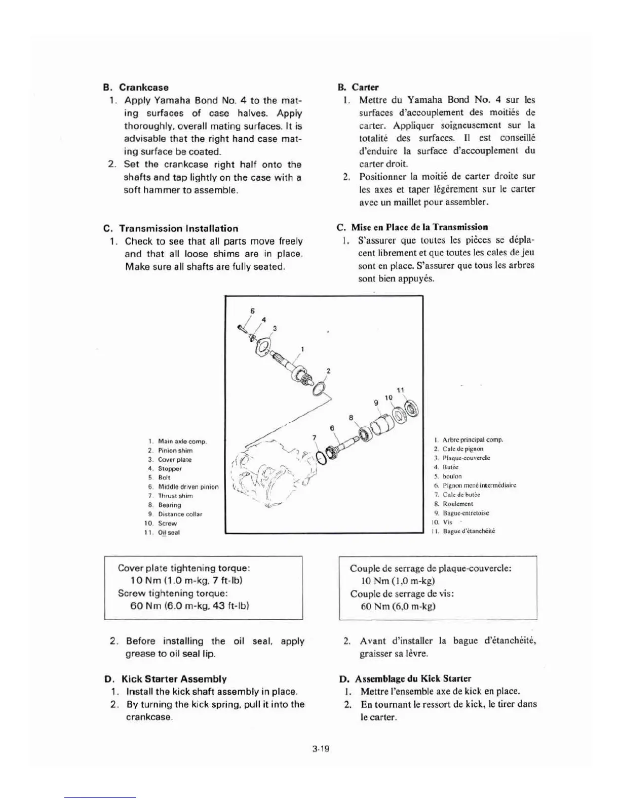 Yamaha MA50 - Kick Starter Assembly; Transmission Installation
