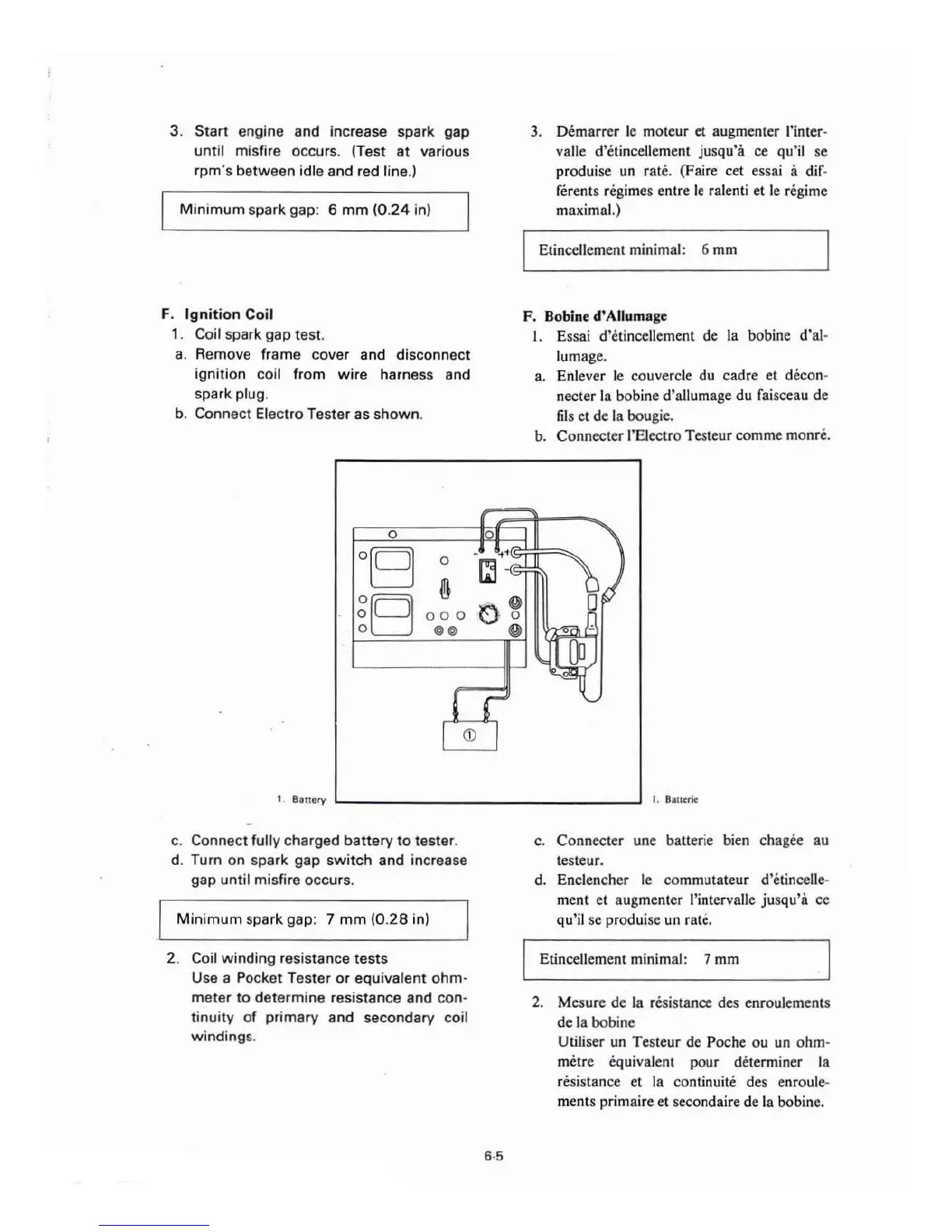 Yamaha MA50 - Ignition System: Spark Gap and Coil Tests