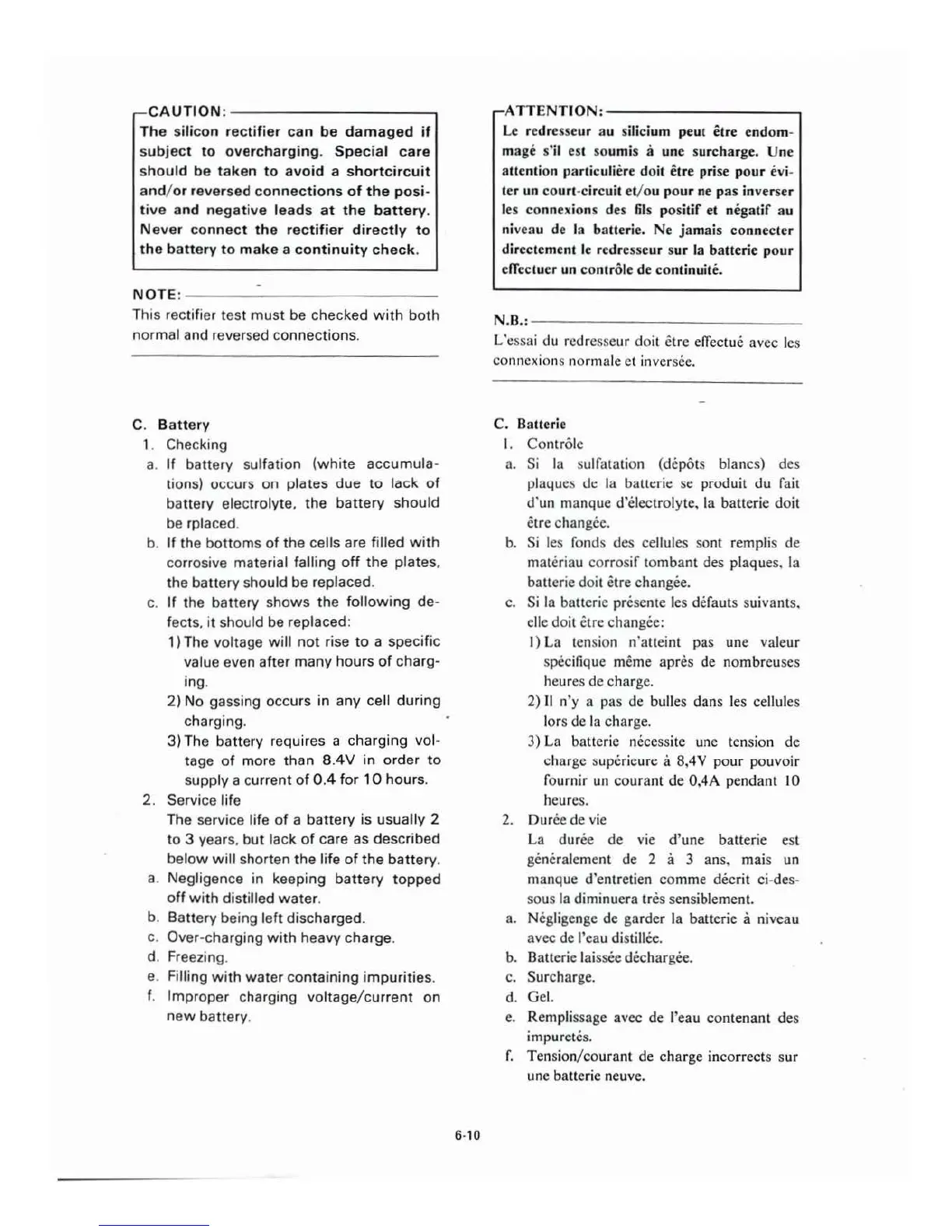 Negligenge de garder la batterie a niveau