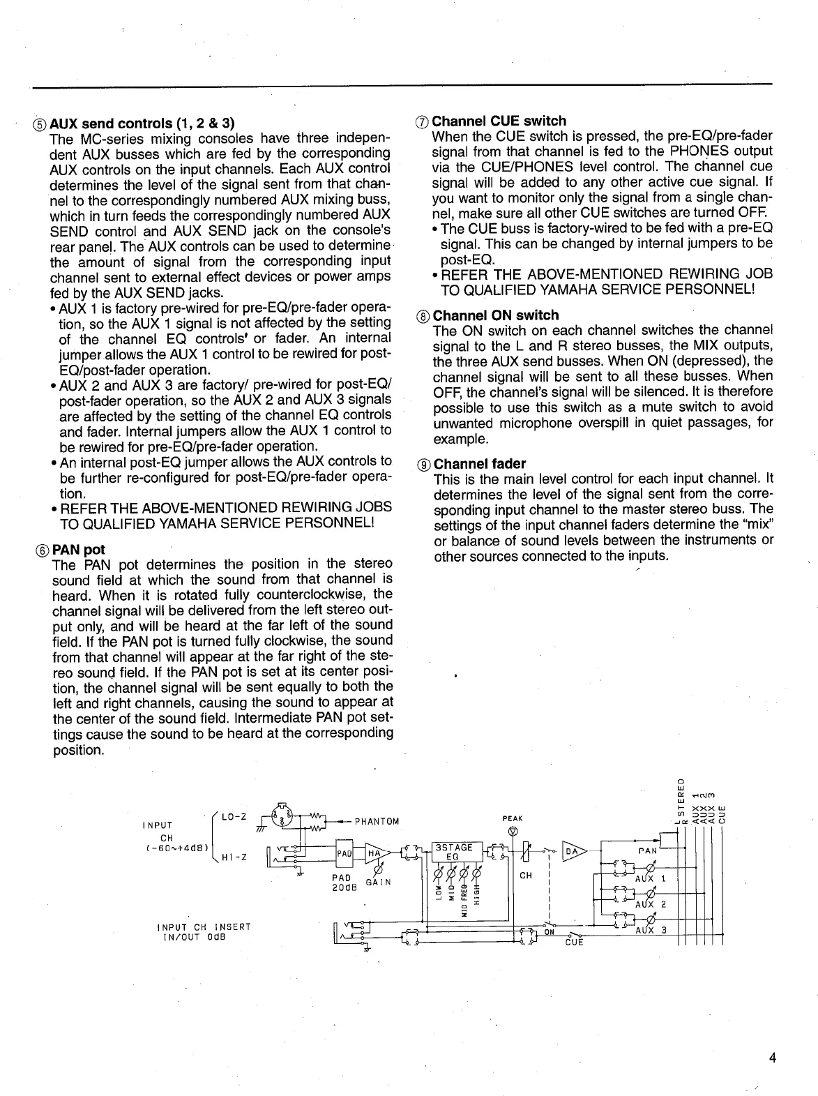 Yamaha MC1203 - AUX Send Controls; Channel CUE Switch; Channel on Switch; Channel Fader