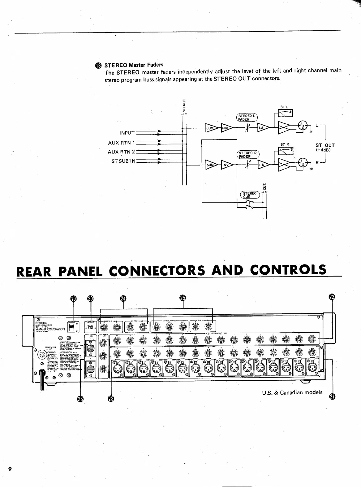 Yamaha MC1602 - REAR PANEL CONNECTORS AND CONTROLS; Power and Input Connectors