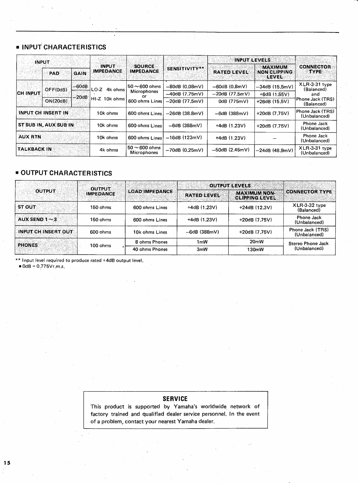 Yamaha MC1602 - Input;Output Characteristics