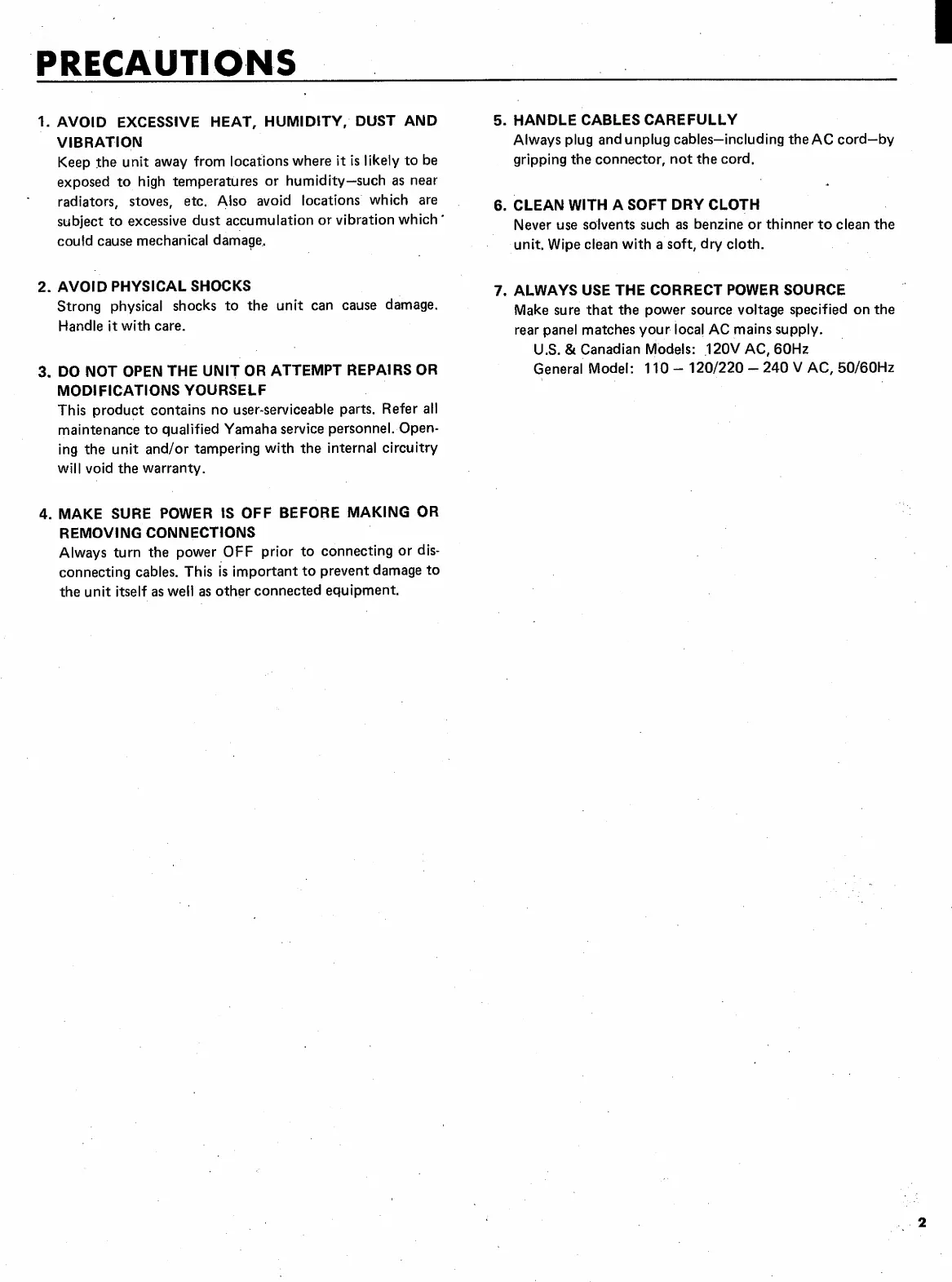 Yamaha MC1602 - PRECAUTIONS; Safety and Handling Guidelines