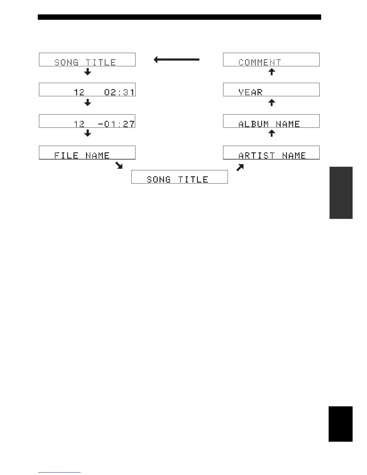 Bij het scrollende display worden achtereenvolgens de songtitel, de naam van de artiest en de albumtitel over het display geschoven.