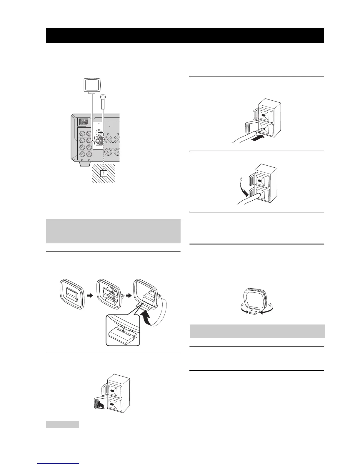 Pour utiliser la radio de l’ampli-tuner, raccordez les antennes AM et FM fournies aux bornes correspondantes. Si la réception des