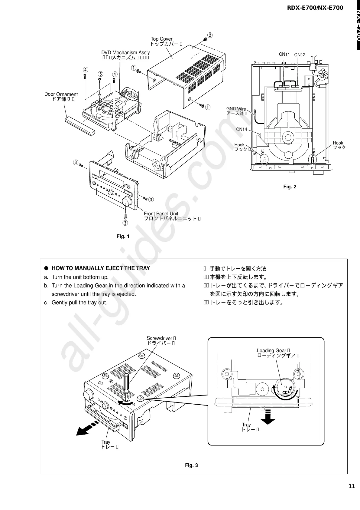 b. トレーが出てくるまで、ドライバーでローディングギア