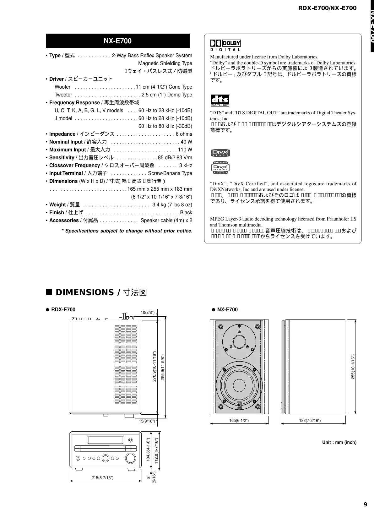 • Type / 型式 . . . . . . . . . . . . 2-Way Bass Reflex Speaker System