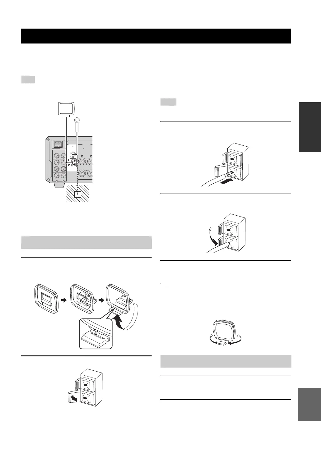 수신기로 라디오를 청취하려면 동봉된 AM 및 FM 안테나를 지정된 터미널에 연결합니다 . 사용자 지역의 라