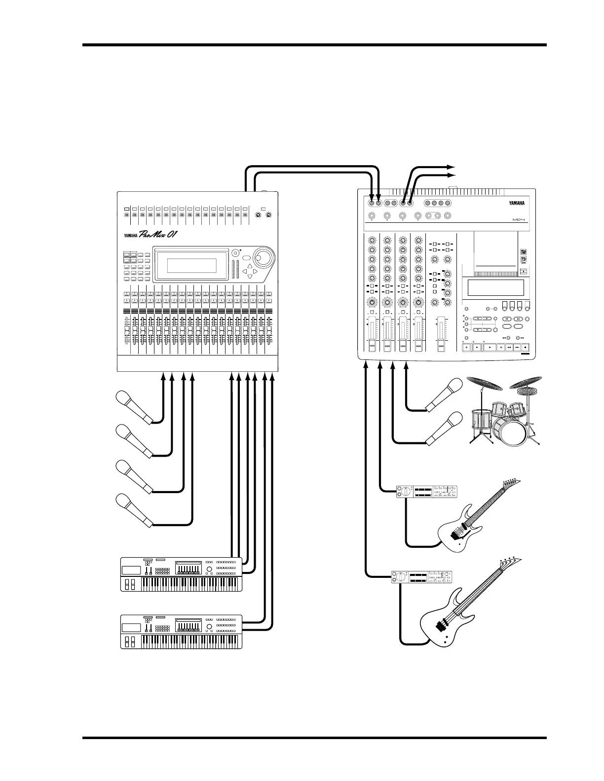 tracks for recording. The following illustration shows how to connect a sub-mixer.