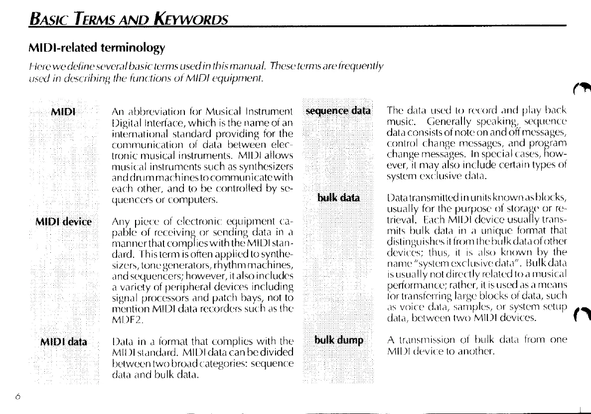 Yamaha MDF2 - MIDI Terminology and Keywords; MIDI-related Terminology