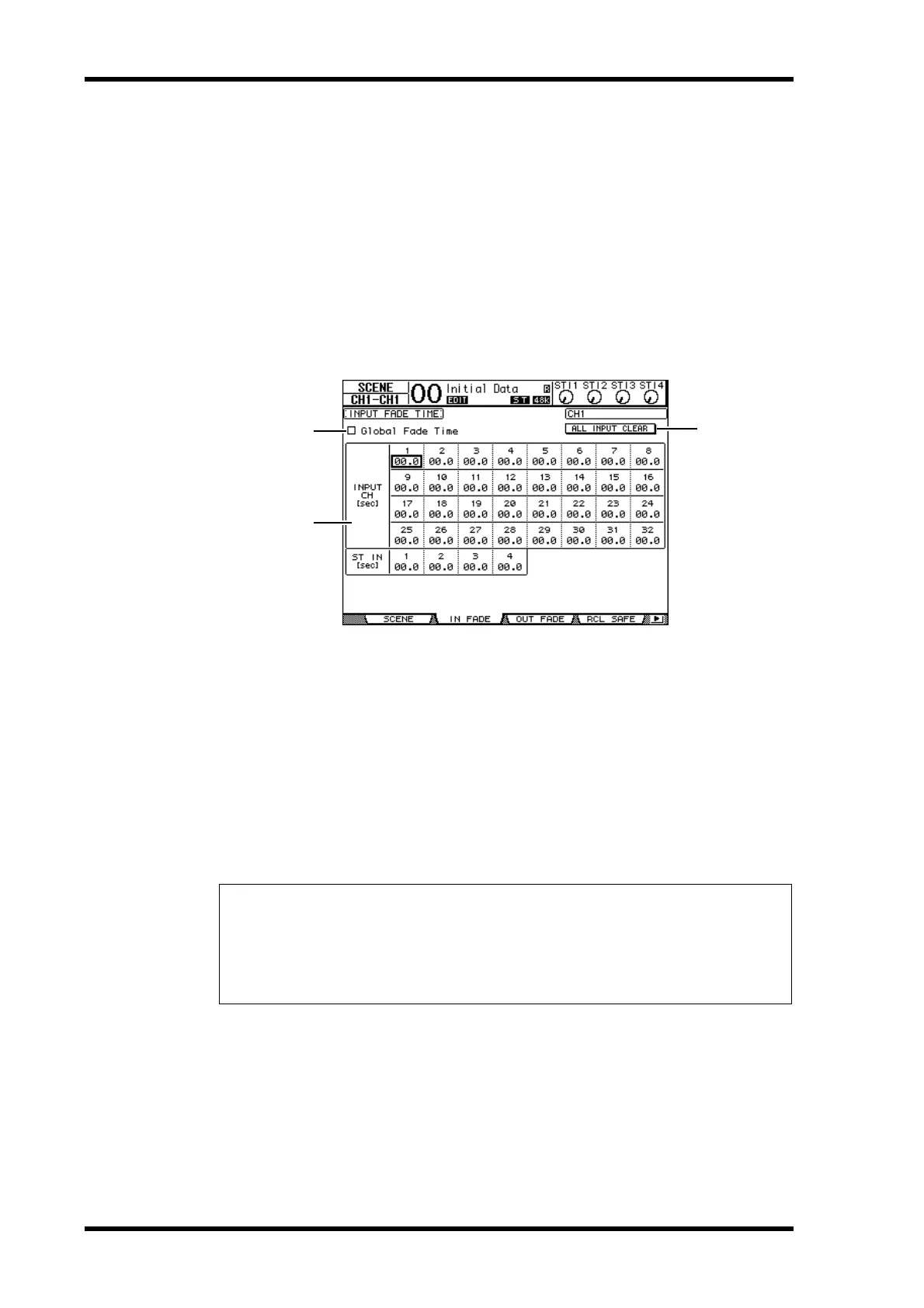 To set the Fade Time for Input Channels 1–32 and ST IN Channels 1–4, press the DISPLAY
