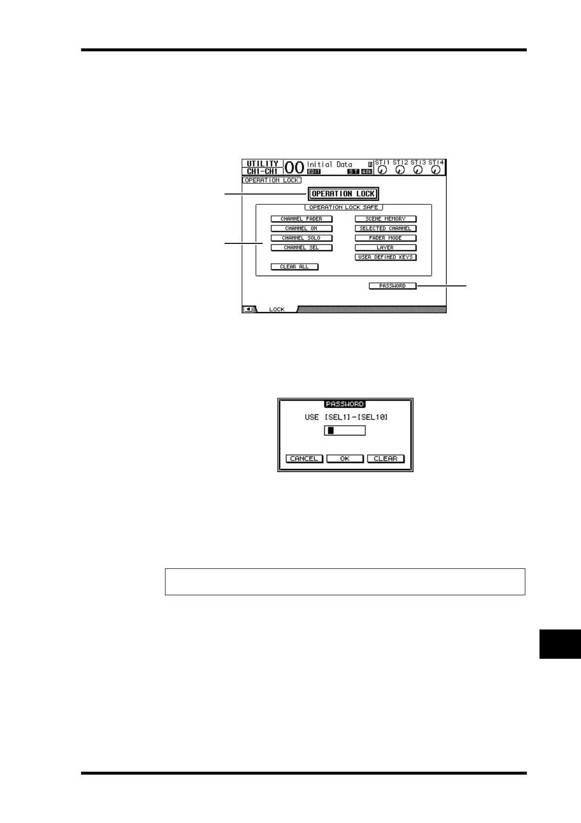 Enter a four-letter password using the Channel 1–10 [SEL] buttons (Channel 10 [SEL]