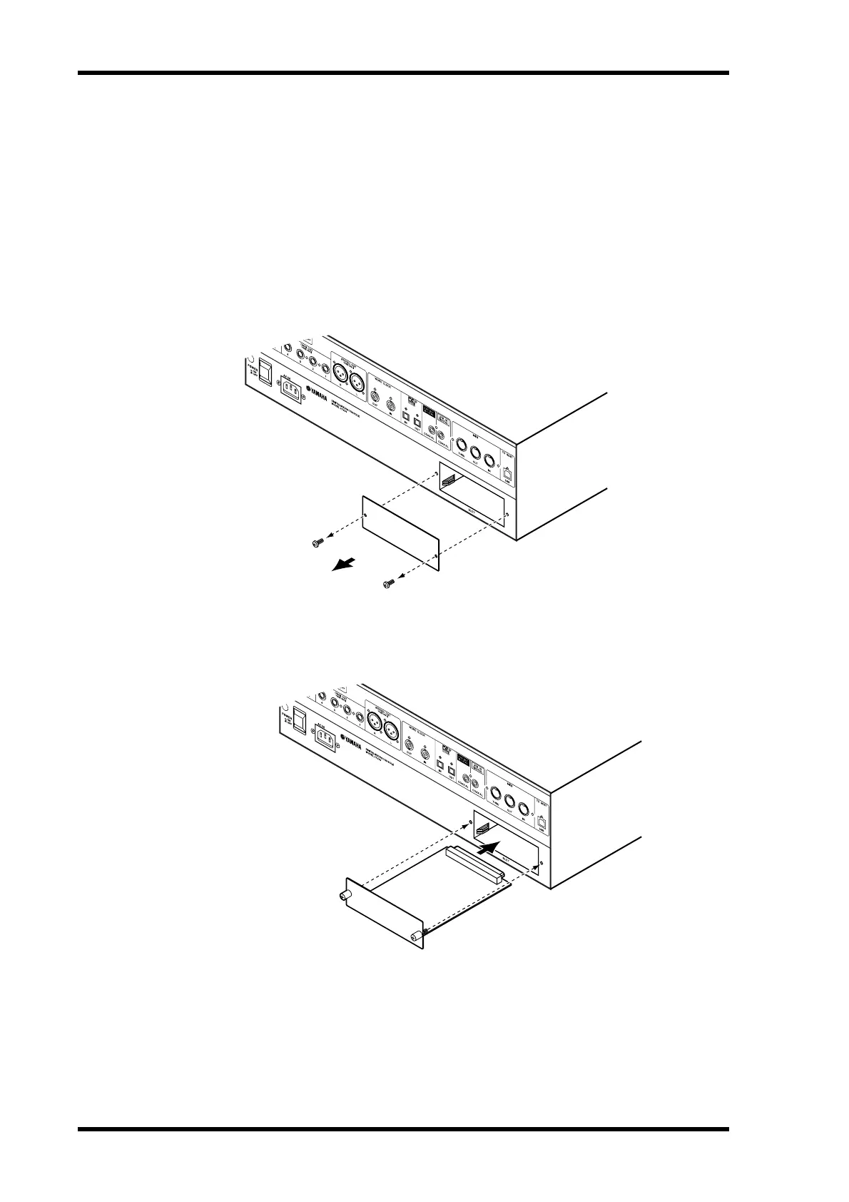 2 Undo the two fixing screws and remove the slot cover, as shown below.