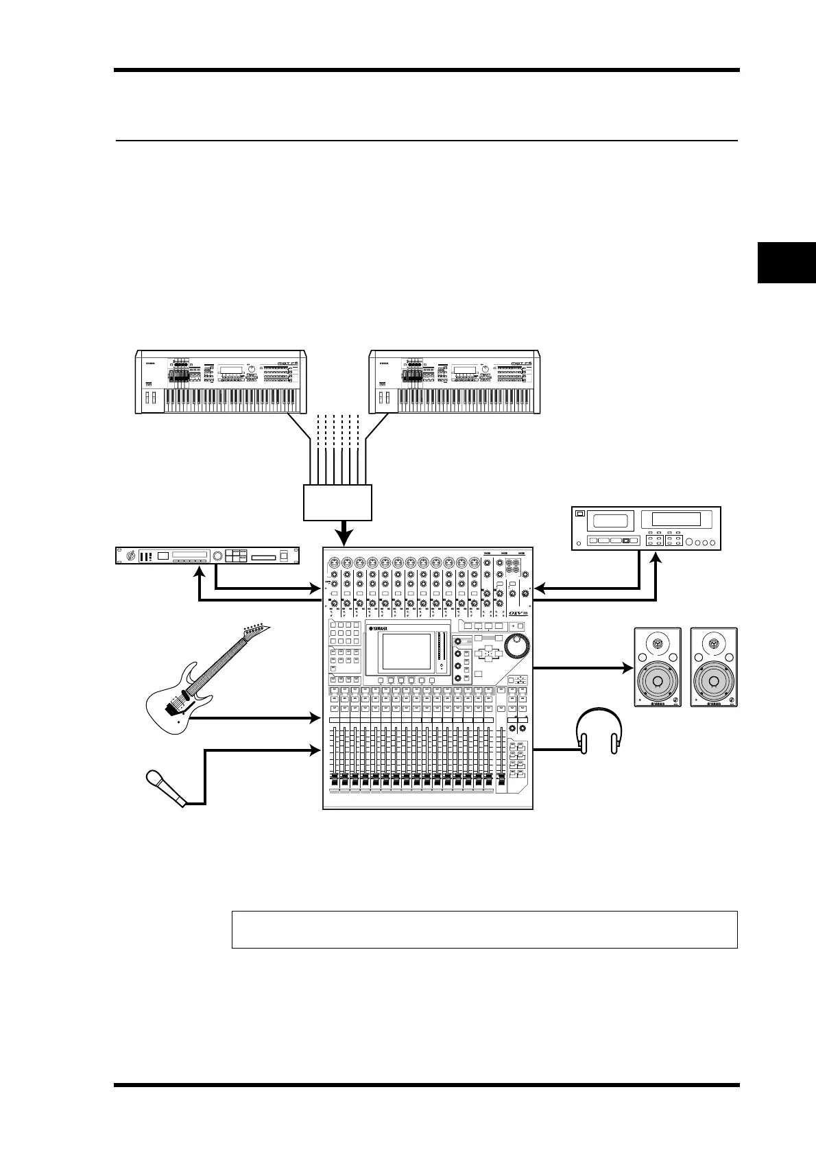 In this system, the 01V96, with an optional AD card (MY8-AD, MY8-AD96, etc.) installed