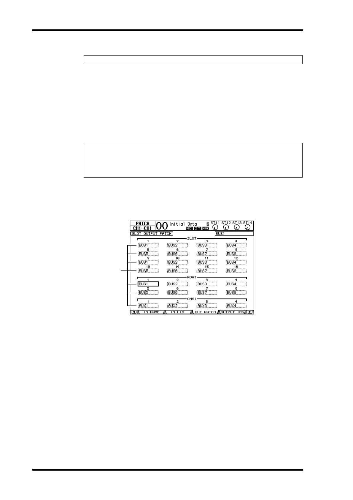1 Press the DISPLAY ACCESS [PATCH] button repeatedly until the following