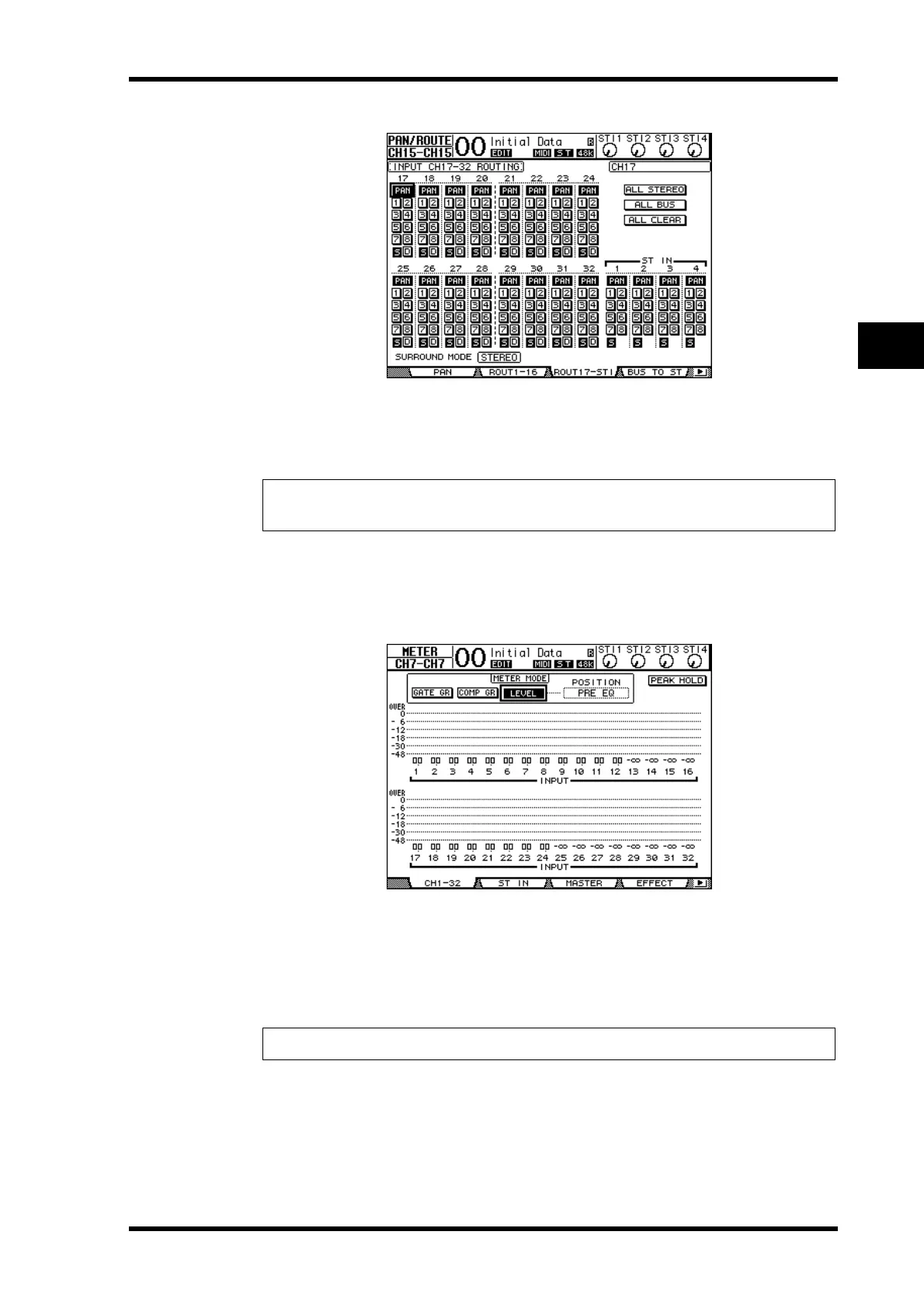 Tip: Controlling Input Channel 17–32 Pan settings, faders, and the [ON] buttons will affect