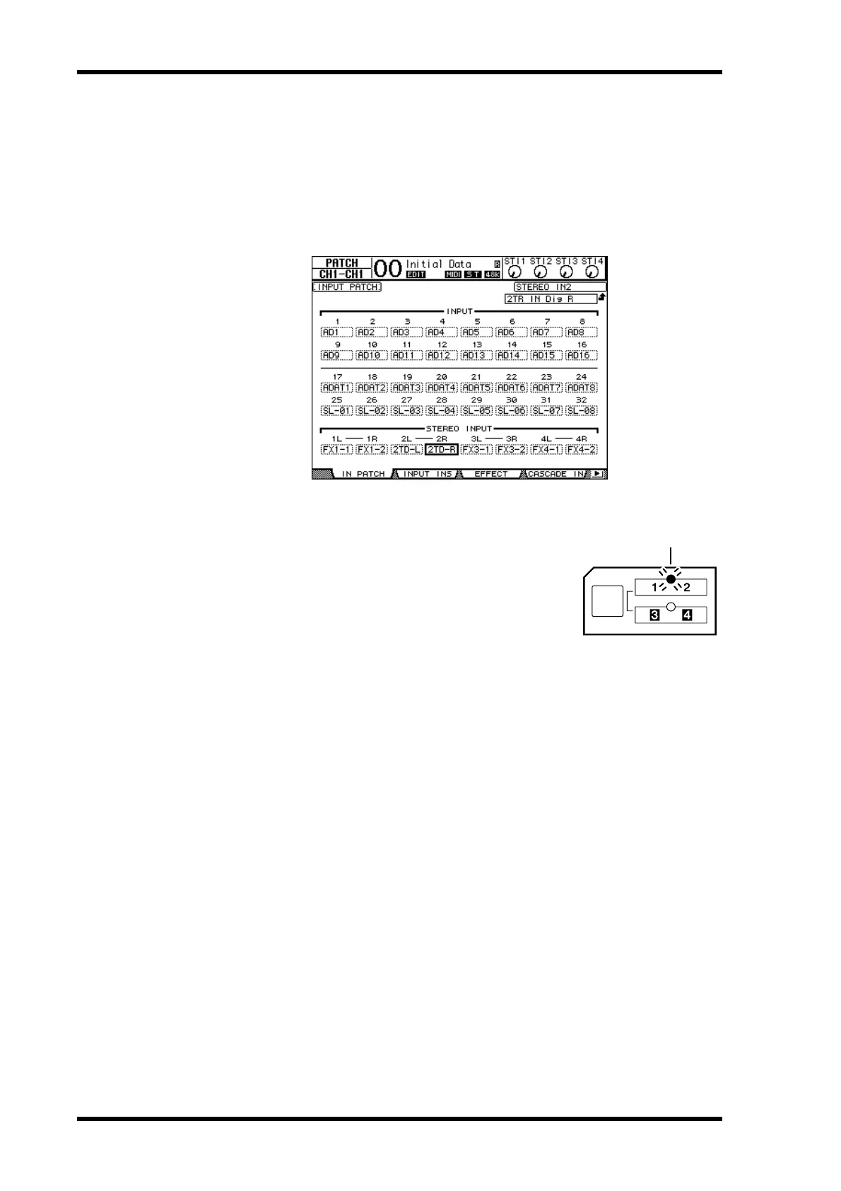 3 Move the cursor to the 2L parameter box in the STEREO INPUT section,
