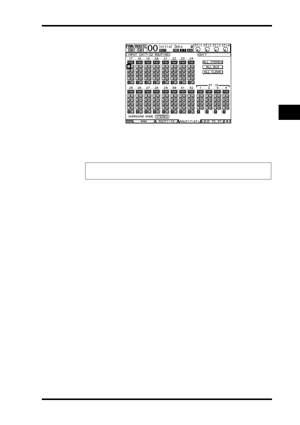5 Use the PAN parameter controls for Input Channels 17–32 on the page to