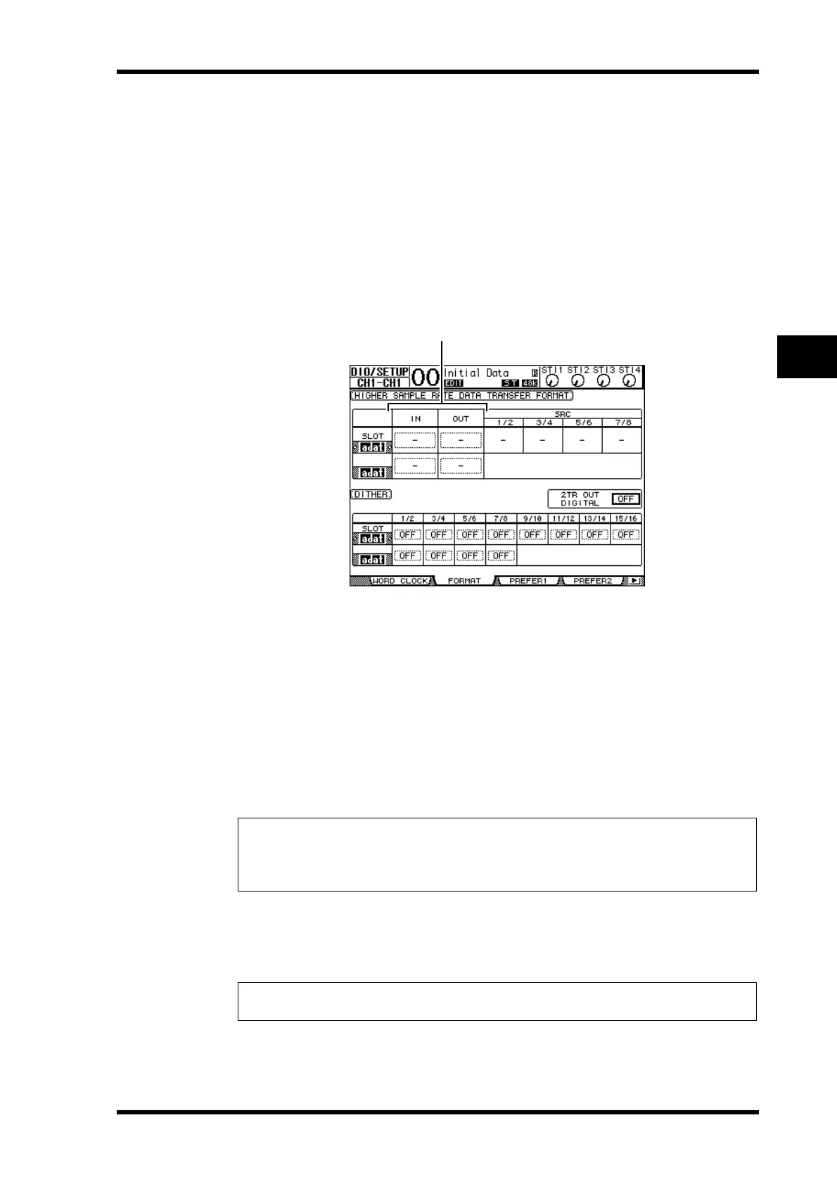 3 Press the DISPLAY ACCESS [DIO/SETUP] button repeatedly until the