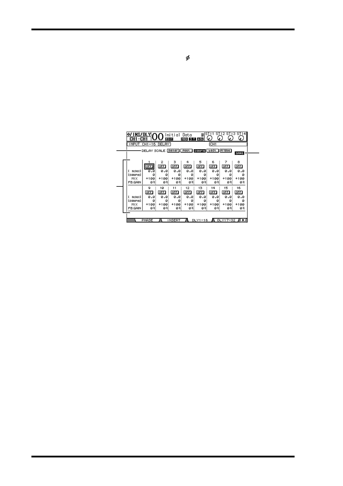 To set the delay for each channel, press the [ /INSERT/DELAY] button repeatedly until