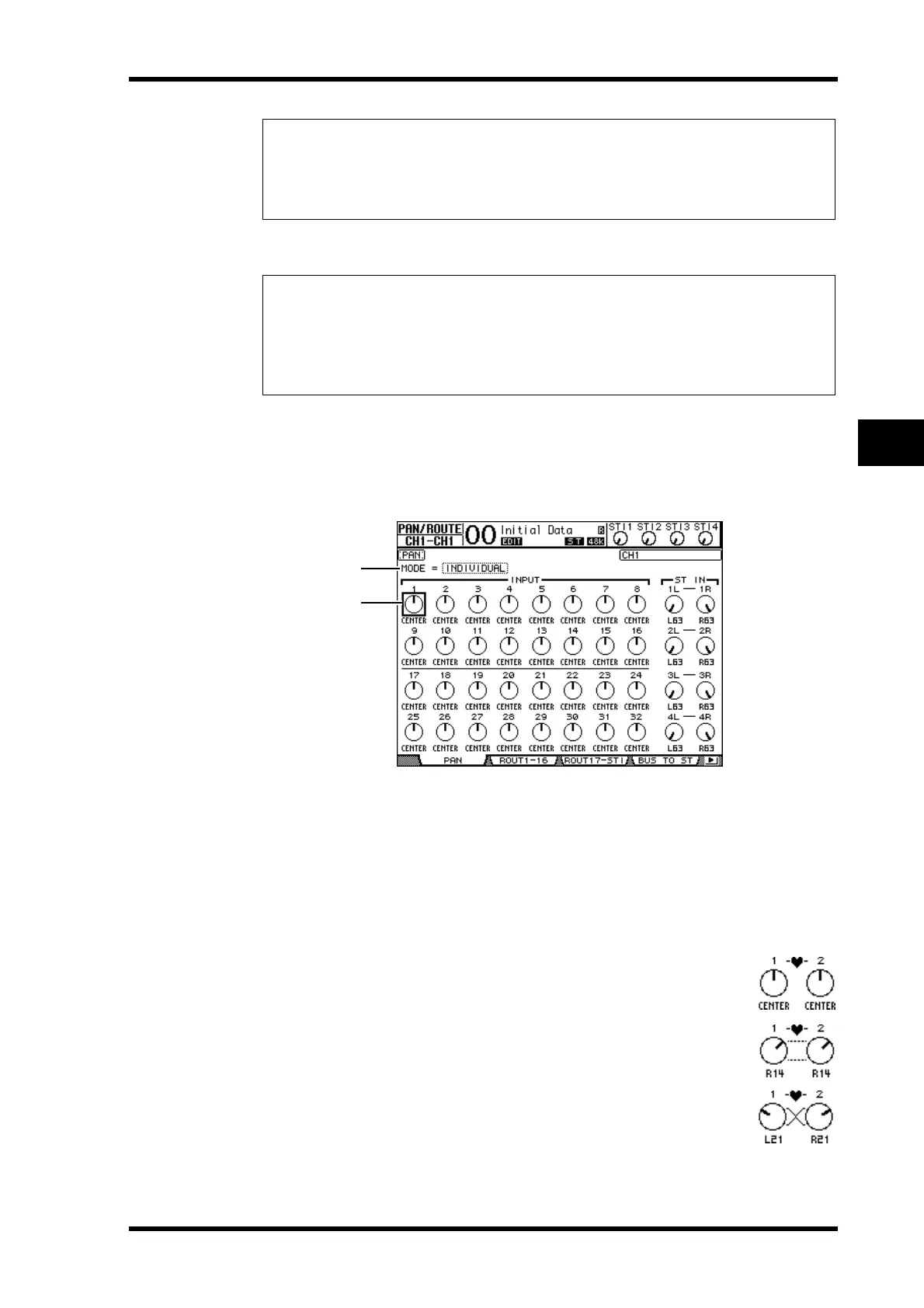 channel, press the [PAN/ROUTING] button repeatedly until the Pan/Route | Pan page