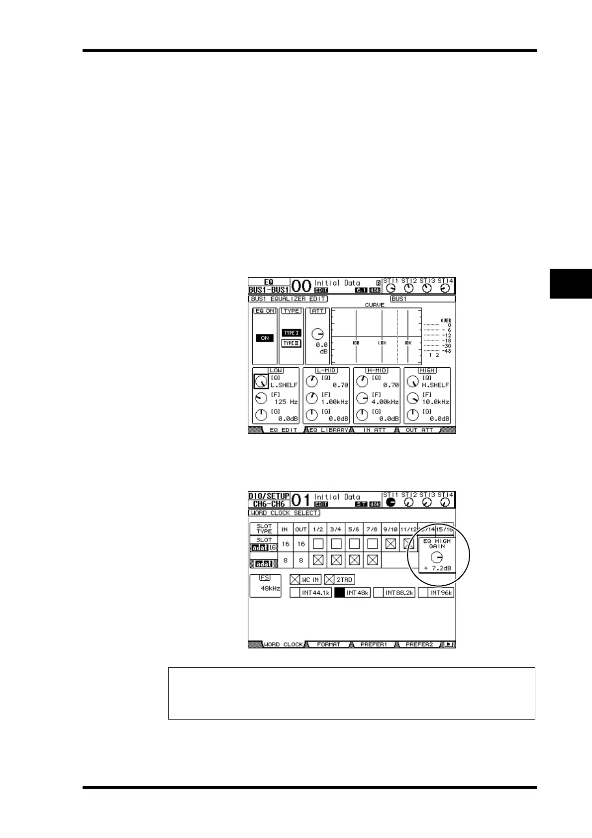 When the Auto EQUALIZER Display (page 227) check box is on, the 01V96 displays the