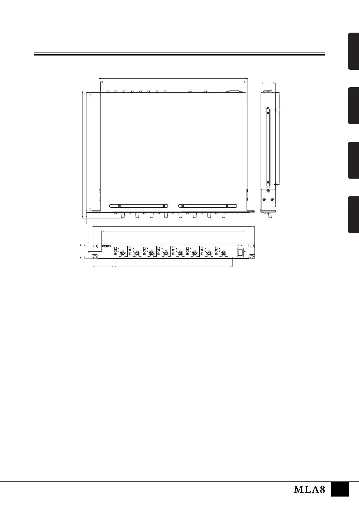 If you do not intend to rack-mount the MLA8, attach the included rubber feet to the bottom surface of the device.