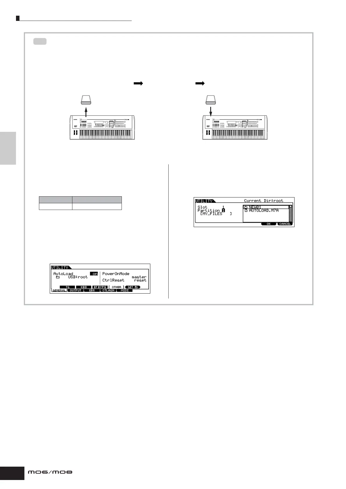 2 Enter the Utility mode and call up the Auto Load