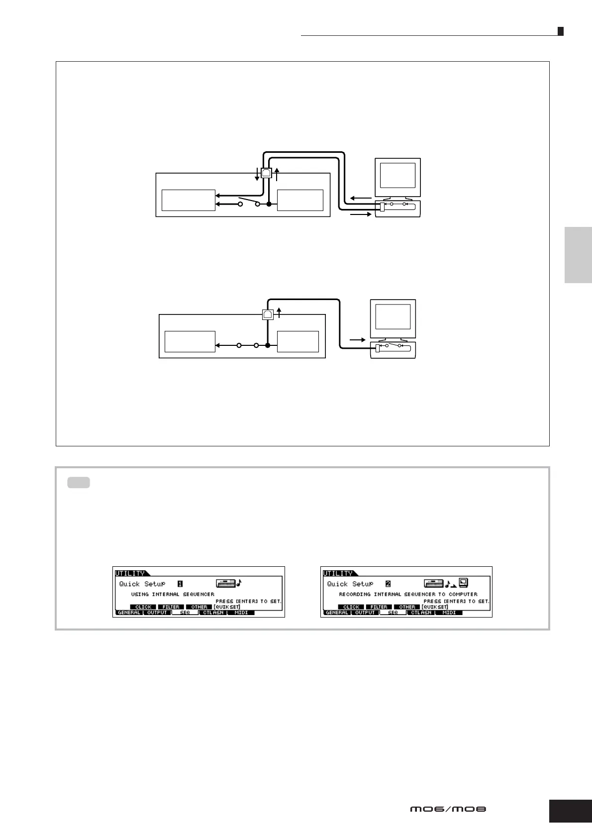 n Although not indicated in the illustration above, the MO actually receives and responds to MIDI data from the computer application (sequencer),