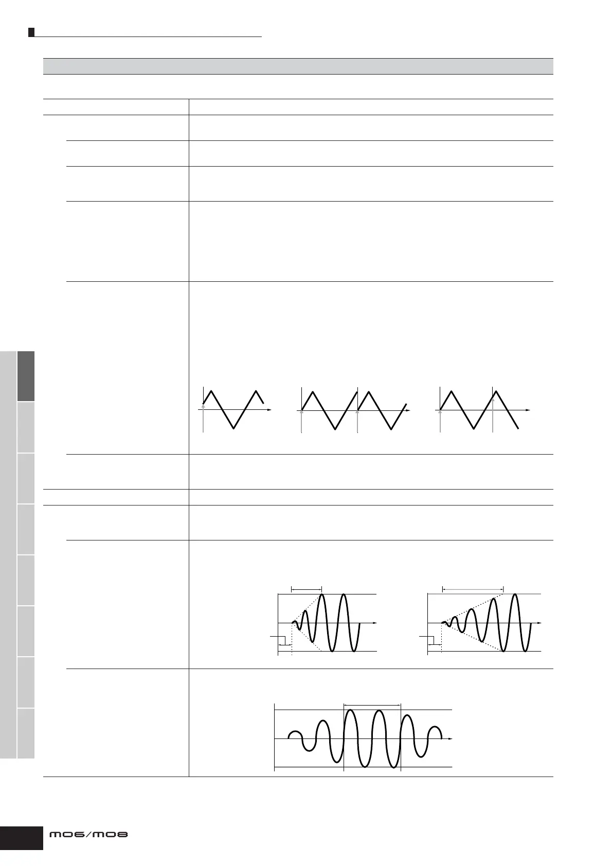 From these displays, you can make a variety of LFO related settings. As its name suggests, the LFO creates waveforms of a low frequency. These waveforms