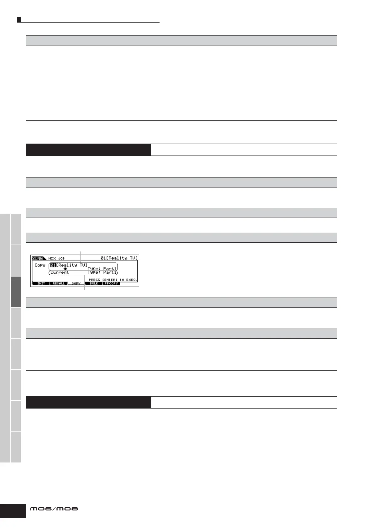 This convenient operation lets you copy certain settings of the four Parts in a performance to the Song Mixing program currently being edited.