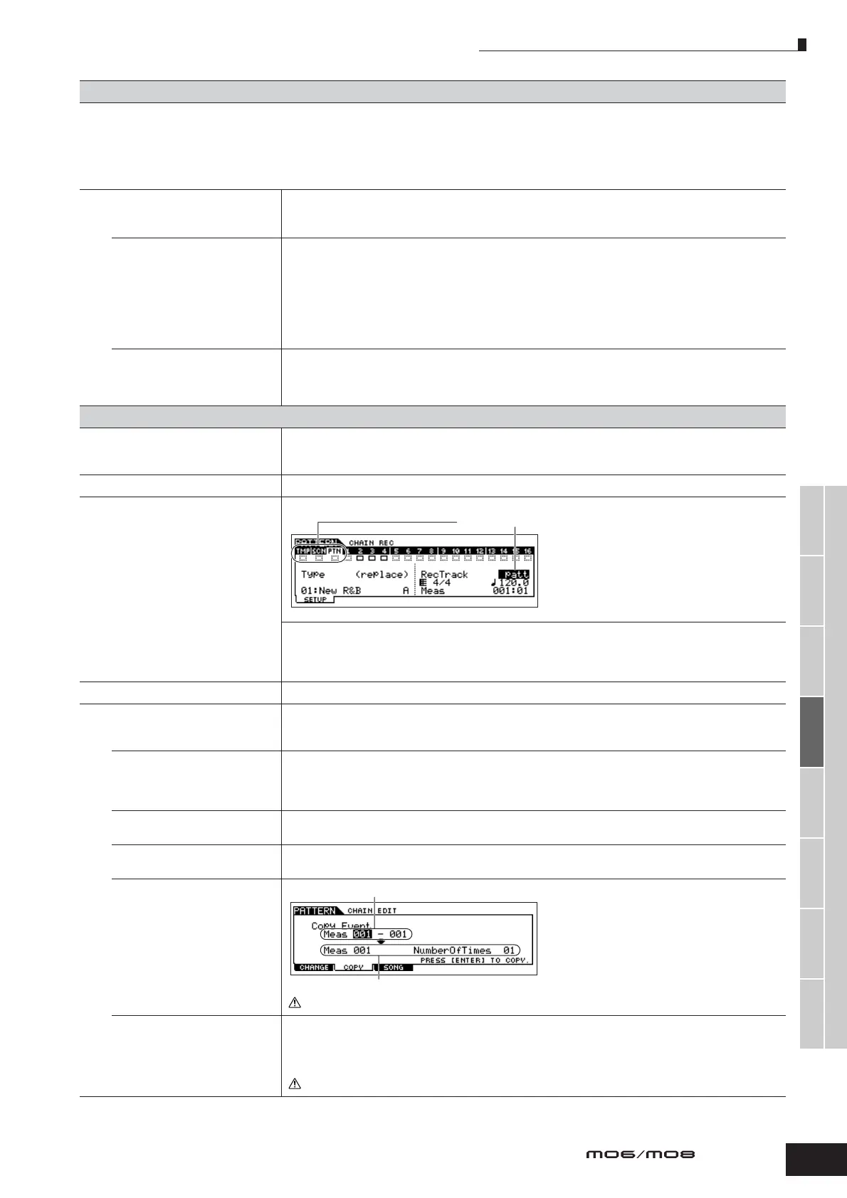 Pattern Track Edit From this display, you can edit the section changes for each measure. Move the cursor to the “Section” column