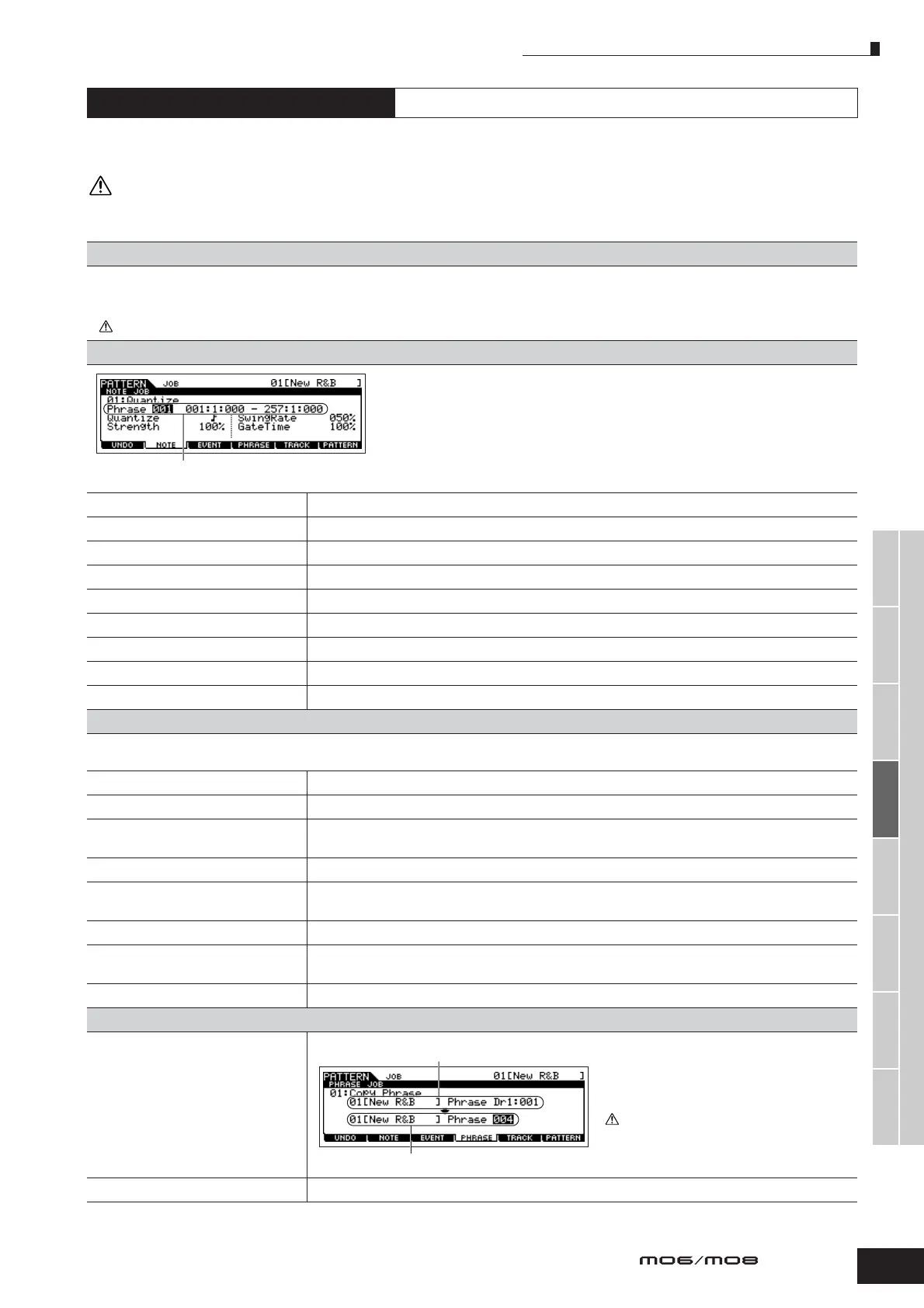 unlike in the Song Job mode, Pattern Note data Jobs are applied to the phrases (001 – 256) and